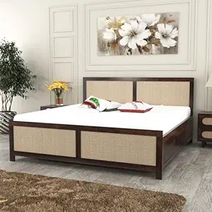 King Size Bed Rattan Cane With Storage Wooden bouble cot for Bedroom,Living Room & Hotel (5)