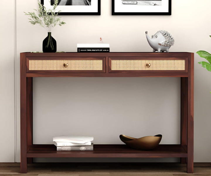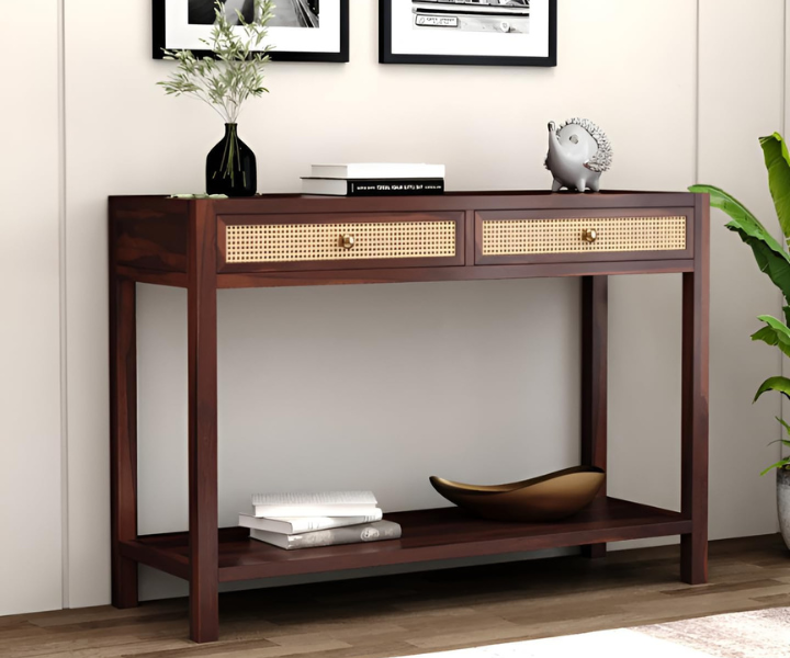 Solid Sheesham Wood Console Table Walnut Finish For Living Room